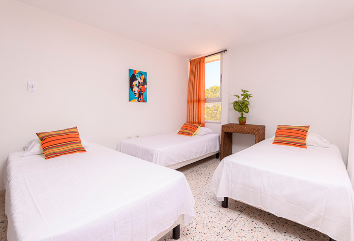 Habitación para tres personas de gran tamaño y muy cómoda. La habitación triple cuenta con tres camas de una plaza .Esta es una habitación familiar, para un matrimonio más un hijo o para tres amigos o la combinación de tres personas que usted prefiera. Cuenta con conexión gratuita a internet de alta velocidad WI FI, minibar, TV LCD de pantalla plana.