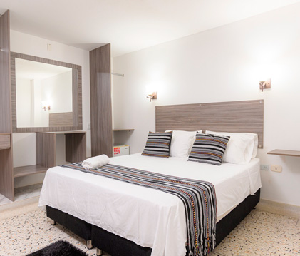 Habitación para dos personas, pensada para quienes requieren un espacio cómodo y adecuado. Dispone de dos camas de una plaza o una cama matrimonial. Cuenta con conexión gratuita a internet de alta velocidad WI FI, minibar, TV LCD de pantalla plana.si lo desea es posible solicitar la habitación doble para uso individual.